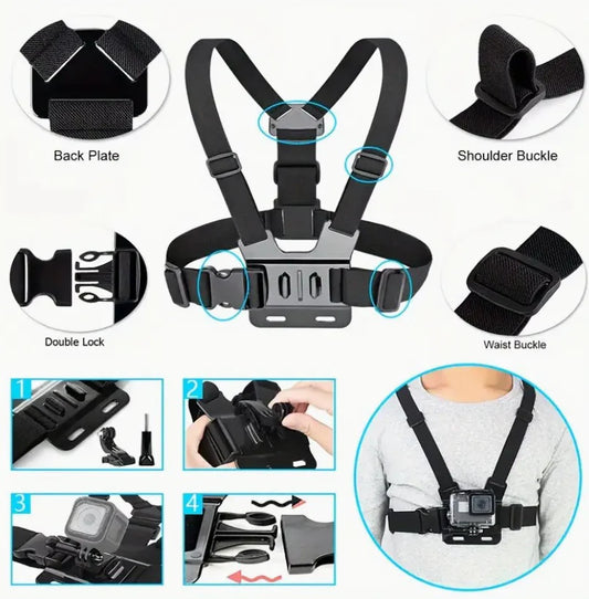 🎥 Soporte de teléfono de 5 en 1 para pecho con correa ajustable