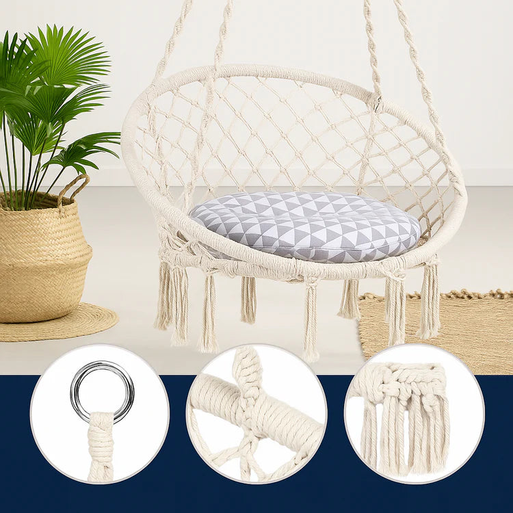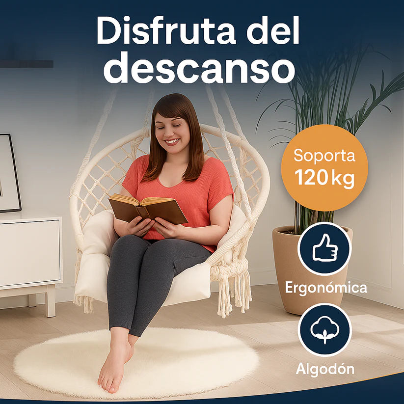 Disfruta de momentos de relajación total con esta elegante y cómoda silla hamaca colgante
